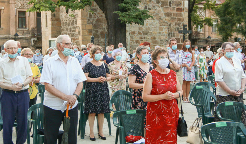 „Államalapító Szent István királyunkat ünnepeljük, aki halálos ágyán a Szűzanyának ajánlotta népét. Ő úgy tekintett a népére, mint egy családra, amelynek szüksége van édesanyára. Mi egy nagy család tagjai vagyunk – fogalmazott a szatmári megyéspüspök. – Kívánom, hogy ez a közösség, ez a város igazi családdá forrjon össze, és akkor nemcsak múltja, hanem jövője is lesz. A boldogságos Szűzanya oltalmazzon mindenkit, Szent István királyunk pedig járjon közben mindannyiunkért! Hála a háromszáz évért, és hála mindenkinek az áldozatáért. Ebbe a szentmisébe szeretnénk titeket, őseiteket, mindenkit belefoglalni, akik valamit is tettek, tesznek ezért az Egyházért, tesznek Nagybányáért.”