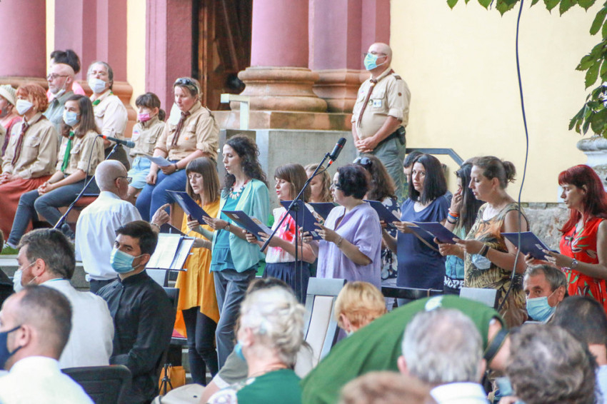 Az ünnepi beszédeket és a záróáldást követően a jelenlévők elénekelték a himnuszokat – köztük a bányászhimnuszt is, amelynek szövegét Czumbel Lajos (1891–1967) egyházmegyei kormányzó írta.