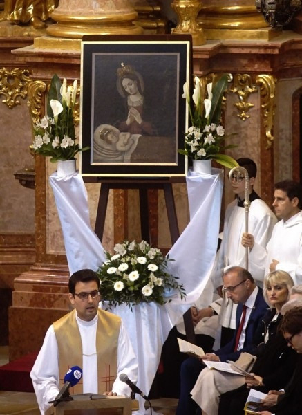 A vérrel verejtékezett Szűzanya köszöntésére gyűltünk ma össze itt, a győri bencés templomban. Szükségszerű, hogy elgondolkodjunk azon, mit kér, mit üzen a Szűzanya az őt tisztelőknek 2017-ben, húsvét negyedik vasárnapján, amikor új papi és szerzetesi hivatásokért könyörög az Egyház világszerte, így mi is. Az imént felolvasott szentírási szakaszok segítenek bennünket abban, hogy megismerjük Isten velünk kapcsolatos tervét. Ennek felismerésében segít bennünket az Egyház Anyja, hogy élete példáján keresztül is még jobban megértsük Isten akaratát.
