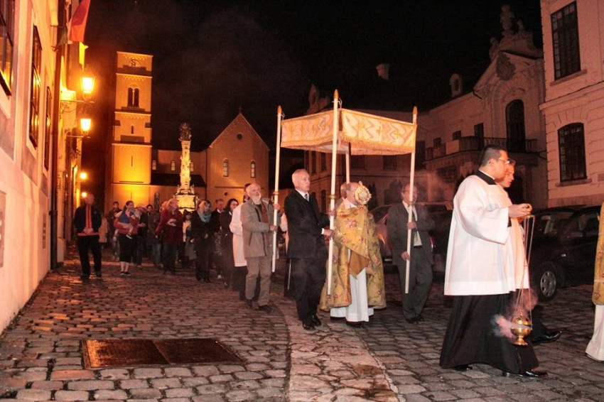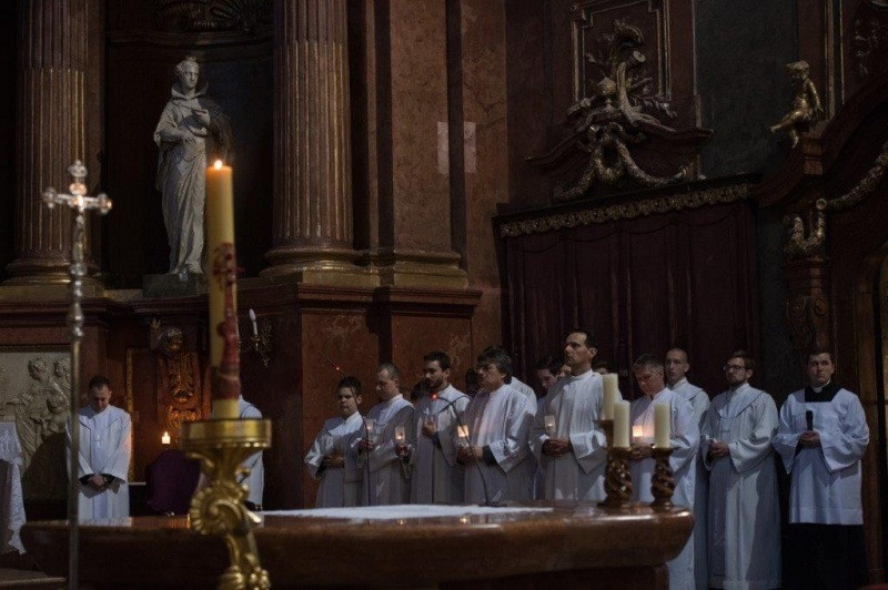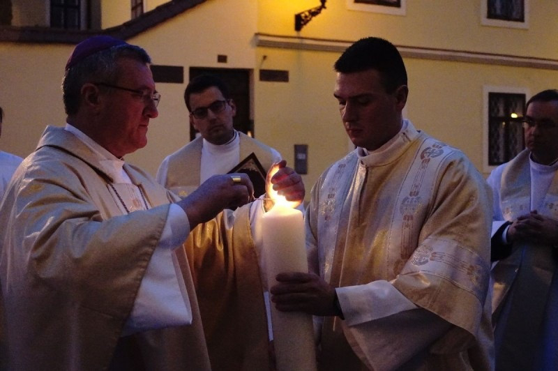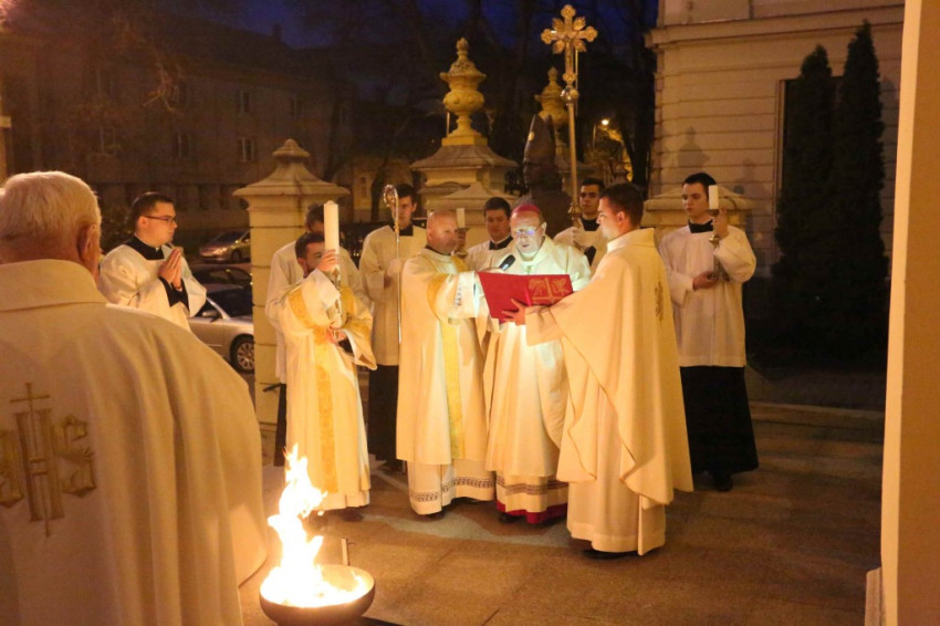 A húsvéti vigília miséje a tűzszenteléssel kezdődött: a sötétségből kivezető fény és világosság átváltoztatja a gyász csendjét a remény és öröm fényességévé.