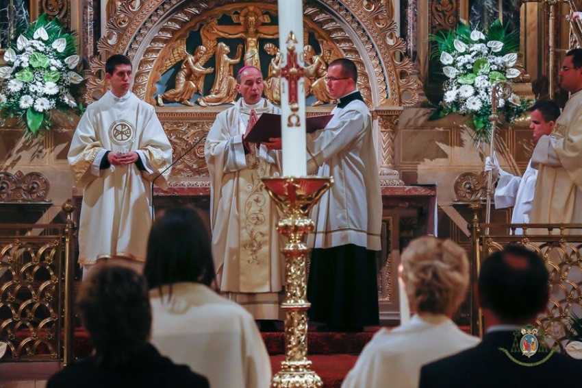 Kalocsán Bábel Balázs érsek vezetésével ünnepelték húsvét vigíliáját a főszékesegyházban.