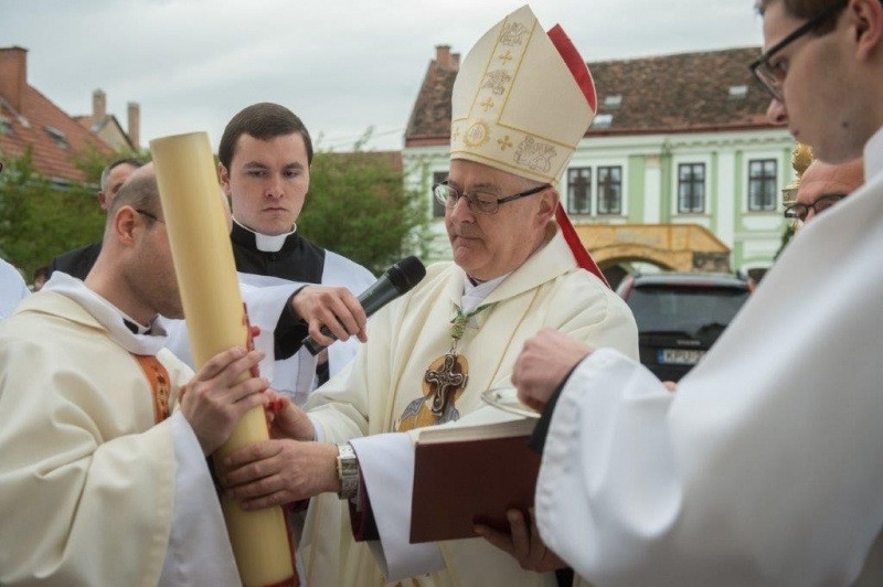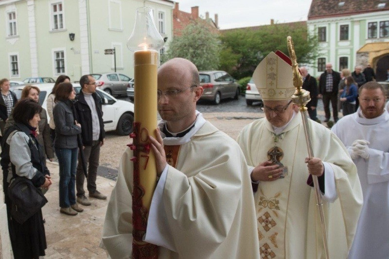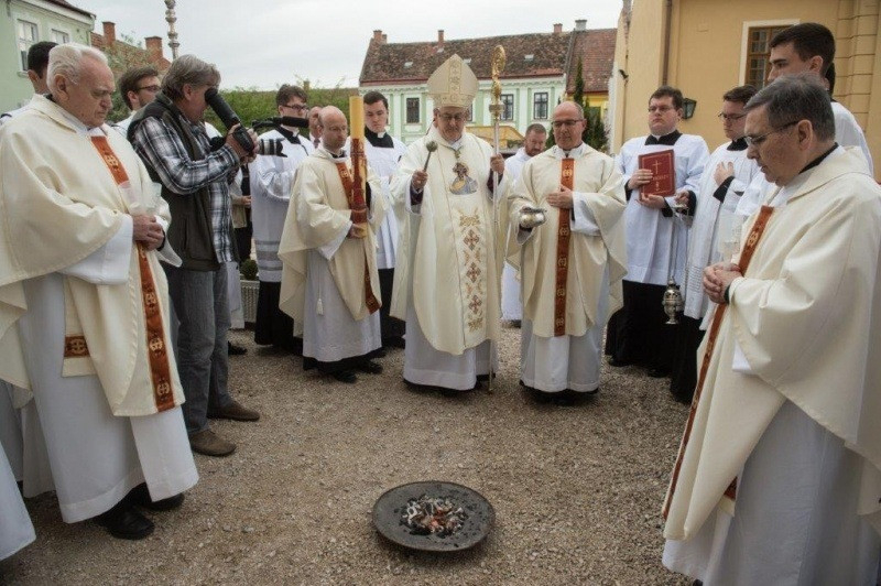 Húsvét vigíliáján Márfi Gyula érsek vezette Veszprémben a szertartást, amely tűzszenteléssel kezdődött.