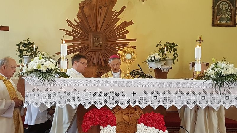 A jubileumi szentmise főcelebránsa Majnek Antal megyéspüspök volt, aki húsz esztendővel ezelőtt felszentelte a templomot. A zarándokokat, a vendégeket és a szentmisét bemutató lelkipásztorokat a plébános köszöntötte a szentmise elején. Ezután a püspök mondott köszöntőt, arra buzdítva a jelenlevőket, hogy a szentmisében adjanak hálát azokért a kegyelmekért, amelyek húsz éven keresztül áradtak Isten jóságából a helyi lelkipásztorokon keresztül a hívekre.