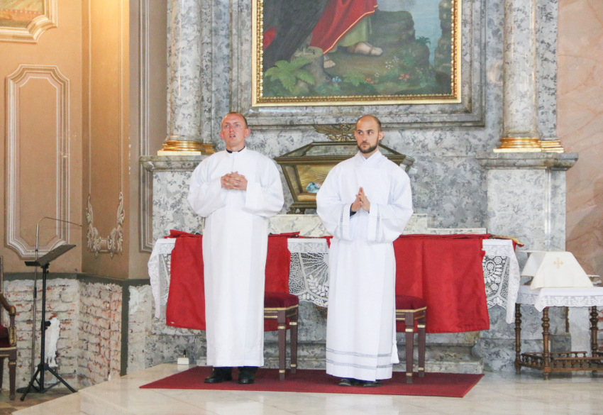 Diakónusszentelésre érkeztek a hívek július 6-án, szombaton délelőtt 11 órára a szatmárnémeti székesegyházba. A gyülekező ünneplő közösségben fel lehetett fedezni a magyar beszéd mellett spanyol, de olasz és más nyelveken hangzó szavakat is, hiszen Jakkel Tamás, a Gyulafehérvári Hittudományi Főiskola és Papnevelő Intézet növendéke, és a spanyol nemzetiségű Garcia Fernandez Daniel, az egyházmegyei Redemptoris Mater Missziós Szeminárium növendéke kérte diakónussá szentelését.