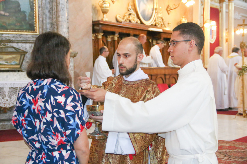 Az újonnan felszenteltek beöltöztek a szerpapok sajátos öltözékébe, a stólába és a dalmatikába, majd a püspök elé járultak és átvették az evangéliumos könyvet annak jeleként, hogy a diakónusszentelésben hatalmat kaptak Isten Igéjének hirdetésére. Ezt követően a főpásztor békecsókkal köszöntötte a felszentelteket, Krisztus barátságának jeleként. A diakónusszentelés szertartása után a szentmise a felajánlással a szokott módon folytatódott; az áldoztatást már az új diakónusok végezték.