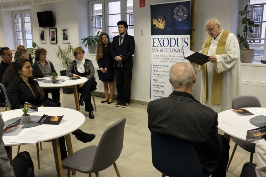 „Mind a négy tér megújítása a hallgatóknak köszönhető, hallgatói ötletekből, hallgatói gondolatokból állnak össze ezek a terek. Itt vagyunk például a Teológus Kávéházban, aminek az ötlete egy hallgatótól származik, beszélgetések, viták, egyéb programok számára. Ami a különlegessége ennek a térnek, hogy a falon nem családi képek, hanem nagy teológusok portréi láthatók. Úgy gondolom, hogy aki belép ebbe a térbe, picit úgy érezheti magát, mintha ő maga is teológus lenne, és bízom benne, hogy leveszi a polcról egy nagy teológus művét, vagy talán később maga is a teológia tanulására adja a fejét. Aztán itt van a szabadulószoba, amit azért alkottunk meg, hogy azoknak is hozzáférhetővé tegyük a teológiát, akik talán kevésbé járatosak benne, akik nem hallgattak még teológiát, de szívesen foglalkoznának vele. A szabadulás élményét élhetik át az Exodus szabadulószobán keresztül. A kápolna, a Szent Pál-imaterem, ami a főiskola csúcsán, a legfelsőbb szinten található, az a hely, ahol hallgatóink rendszeresen összegyűlnek. Délben imádkoznak, énekelnek, Szentírást olvasnak. Én úgy gondoltam, hogy megfelelő környezetet, megfelelő teret kell létrehozni, hogy ott találkozhassanak minden délben, és ezt szerencsére meg is tudtuk valósítani” – fogalmazott az intézmény vezetője.