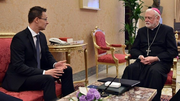 – Gallagher érsek úrral mi minden évben legalább kétszer-háromszor szoktunk találkozni, hogy átbeszéljük a Magyarország és a Vatikán közötti kétoldali kérdéseket, értékeljük a kereszténységgel szembeni nemzetközi törekvéseket és a világpolitika kereszténységre vonatkozó hatásait. Legutóbb tavaly júliusban találkoztunk, ezért itt volt az ideje, hogy újra eszmét cseréljünk. Szeptember általában az ENSZ-közgyűlés időszaka szokott lenni, ami lehetőséget kínál arra, hogy találkozzunk egymással. Ez most ugyan nem történik meg, az ENSZ közgyűlését nem hívták össze fizikailag, személyesen, ezért New Yorkban nem tudunk találkozni, így most kerítettünk sort erre a találkozóra. A legfontosabb téma nyilvánvalóan a keresztényüldözés kérdése volt. Magyarország, a magyar kormány elkötelezett támogatója a nehéz helyzetben lévő üldözött keresztény közösségeknek, sajnos nagyon sok van ebből a világban, hiszen 250-260 millió keresztény éli meg az üldöztetést nap mint nap. Az ő támogatásuk a magyar kormány külpolitikájának szíve közepében van. Az elkövetkezendő időszakban is így lesz ez, támogatjuk a Vatikán törekvéseit a szíriai nyitott kórházak vonatkozásában, ösztöndíjakat adunk diszkriminált fiataloknak a magyarországi egyetemeken, templomokat újítunk fel a Közel-Keleten, lerombolt keresztény települések felújításához adunk segítséget, szóval ez mindenképpen egy közös platform, hogy miként segíthetjük a világon nehéz helyzetben lévő keresztény közösségeket.