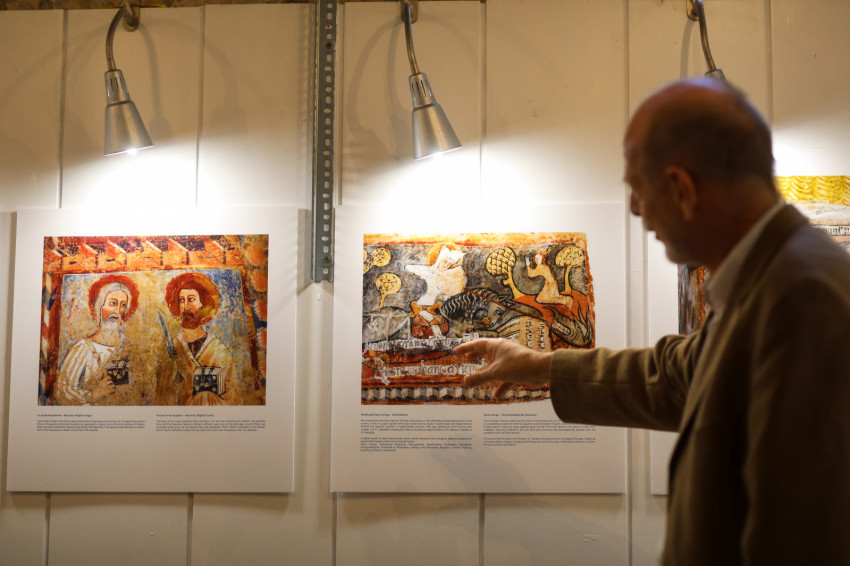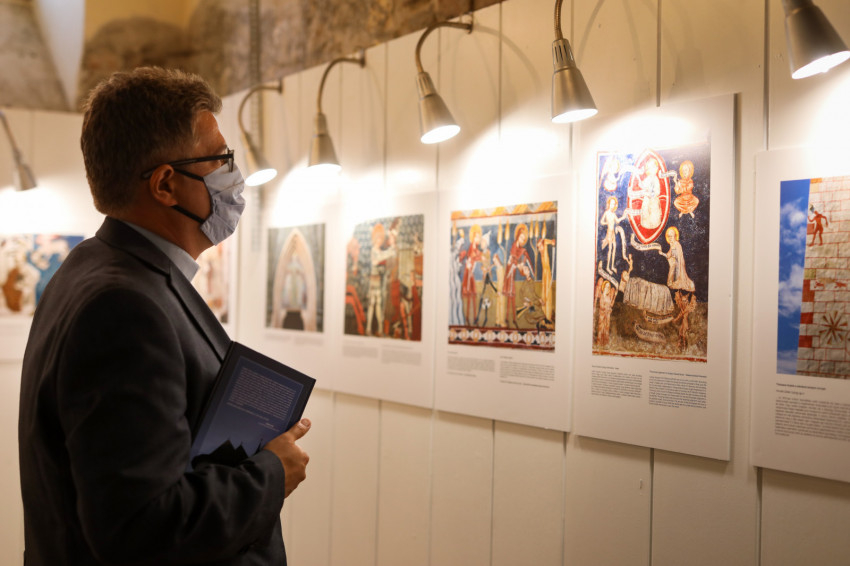 A tárlaton megelevenedő Kárpát-medencei freskók Istent állítják elénk, és olyan szenteket, akik ugyanarról a titokról beszélnek nekünk. Az egyik legkedvesebb ilyen szent László király. A korabeli magyar nép új Mózesként tekintett rá, akinek életében felragyogott ugyanez a titok. A lovagkirály akár úgy is gondoskodik népéről, hogy vizet fakaszt vagy az elrabolt leány után ered és megmenti őt a kunoktól – fogalmazott Kuzmányi István.