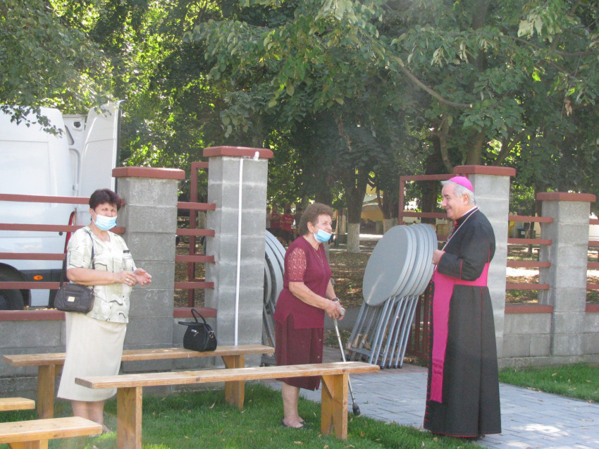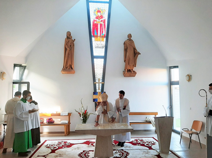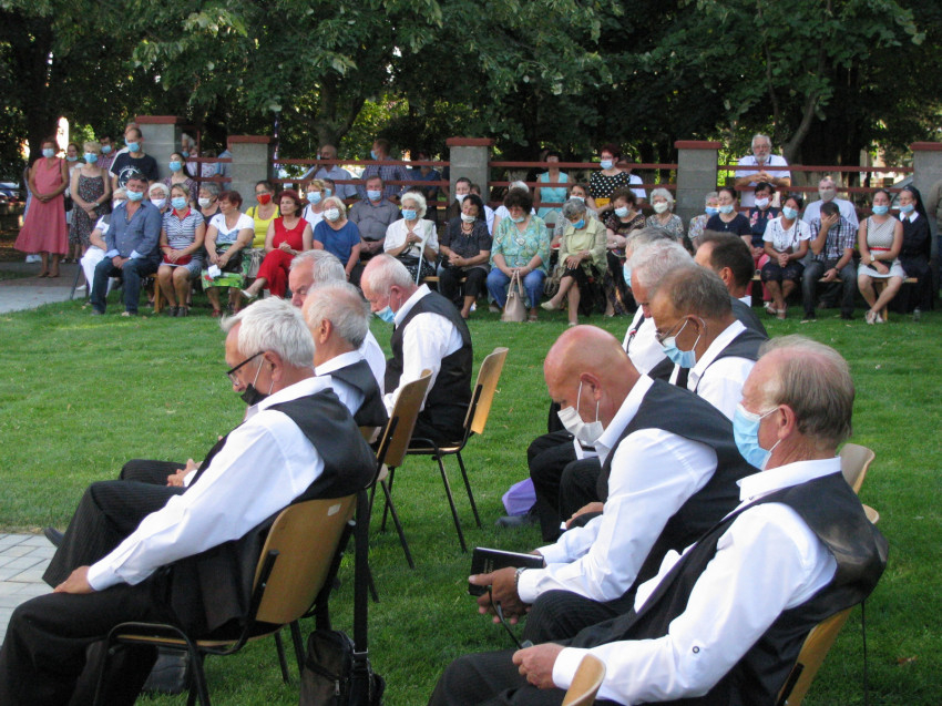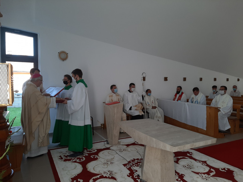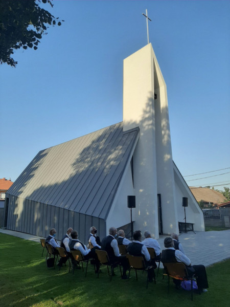 Augusztus utolsó vasárnapján székek és padok sorakoztak katonás rendben, a koronavírus-járvány megfékezését célzó hatályos rendelkezések értelmében egymástól megfelelő biztonsági távolságra a templom előtti frissen nyírt, zöldellő pázsiton. A sors furcsa fintora, hogy azok közül, akik oly sokat fáradoztak céljuk megvalósításán, végül csak korlátozott számban vehettek részt a templomhajóban celebrált szentelési szertartáson, az egybegyűltek jelentős többsége hangszórók segítségével kapcsolódhatott be a szentmisébe.