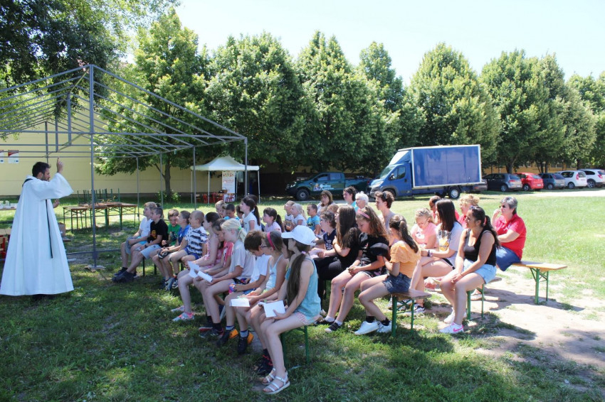 A táborban jelen volt és foglalkozásokat is vezetett Kovács Gábor negyedéves papnövendék, aki nyári gyakorlatát töltötte a győri karitászközpontban, Író Sándor plébános pedig szentmisét mutatott be a tábori helyszínen.