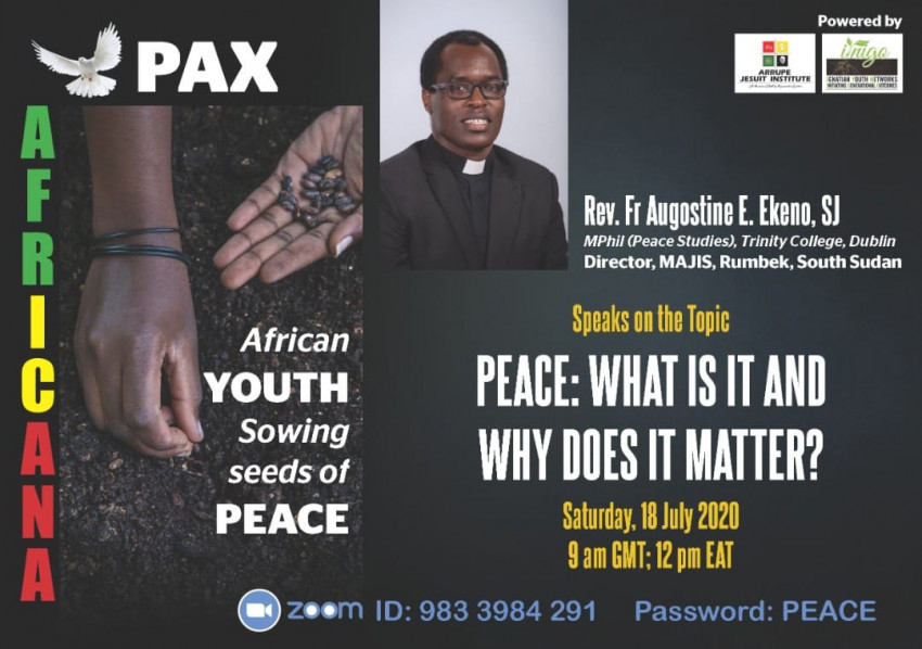 A webkonferencia – melyen sok száz fiatal vett részt különböző országokból, mint Kenya, Dél-Szudán, Uganda, Kongó, Ghána vagy Zimbabwe – sokakat vonzó címe ez volt: A béke magjait az afrikai fiatalság hinti el. A programot Augostine Edan Ekeno, a dél-szudáni Rumbekben szolgáló kenyai jezsuita atya vezette.