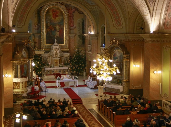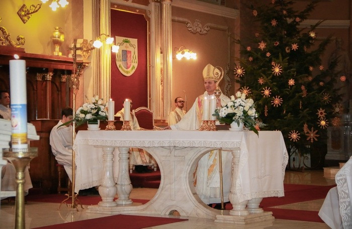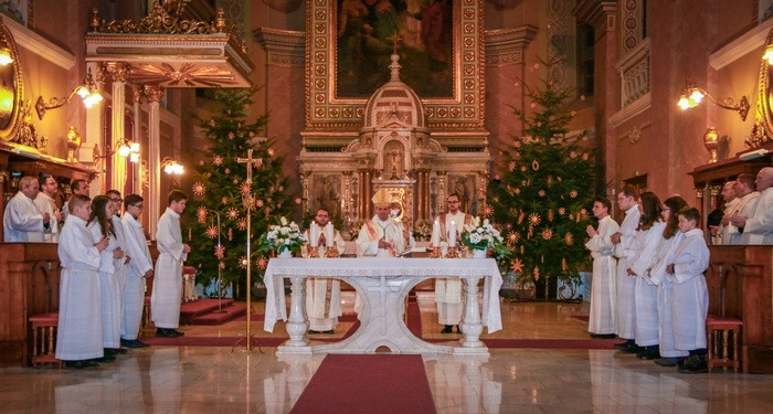 A szatmárnémeti székesegyházban az éjféli mise előtt negyed tizenkettőtől a fiatalok mutattak be karácsonyi műsort. A legszentebb áldozatot Schönberger Jenő püspök mutatta be, aki a bevonulást követő gondolati bevezetőjében Isten titkának, legnagyobb ajándékának nevezte karácsony éjszakáját.
