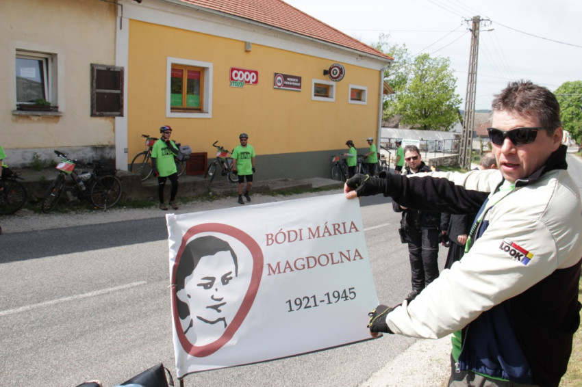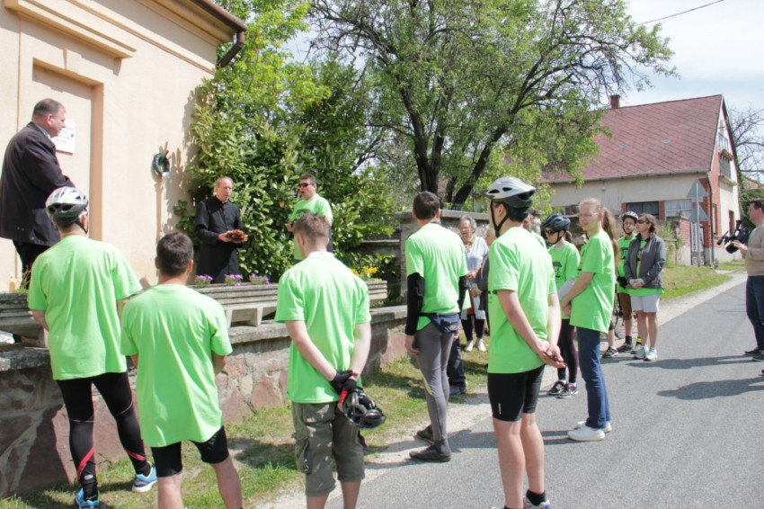A kerékpárosok Badacsonytördemicről Köveskálra indultak, ahol Magdi iskolába járt. Itt Baladincz József plébánossal imádkoztak a templomban, majd rövid imádság után koszorút helyeztek el Magdi emléktáblájánál.