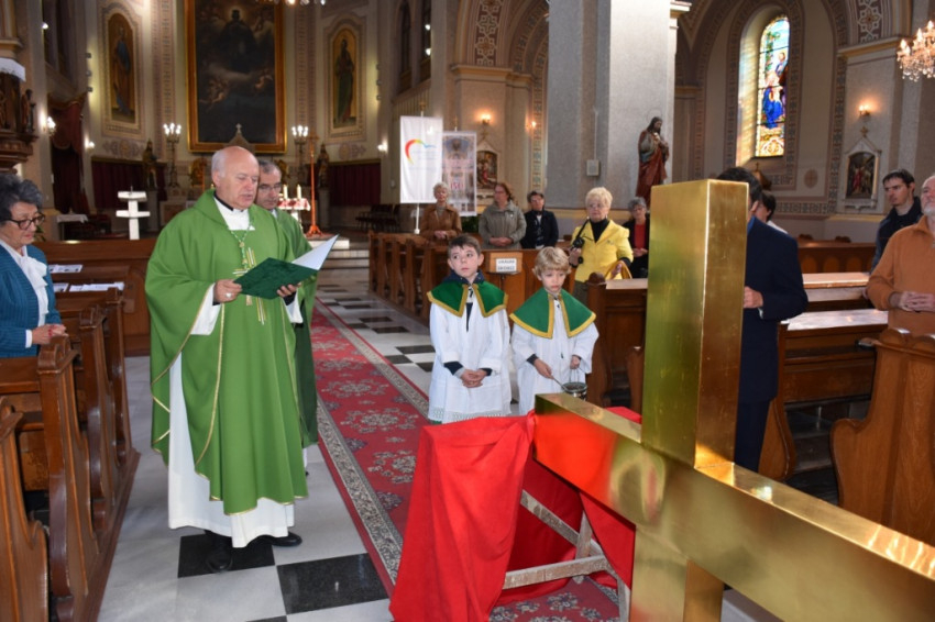 A főpásztor azt is elmondta: a régi keresztet a plébánia udvarában állítják majd fel. A nagybecskereki hívek különös kegyelemben részesültek, hiszen az új keresztet, mielőtt felkerült volna méltó helyére, a székesegyházban csodálhatták meg október 14-én, vasárnap. Ezen a napon a szentmise végén a püspök megáldotta az új keresztet.