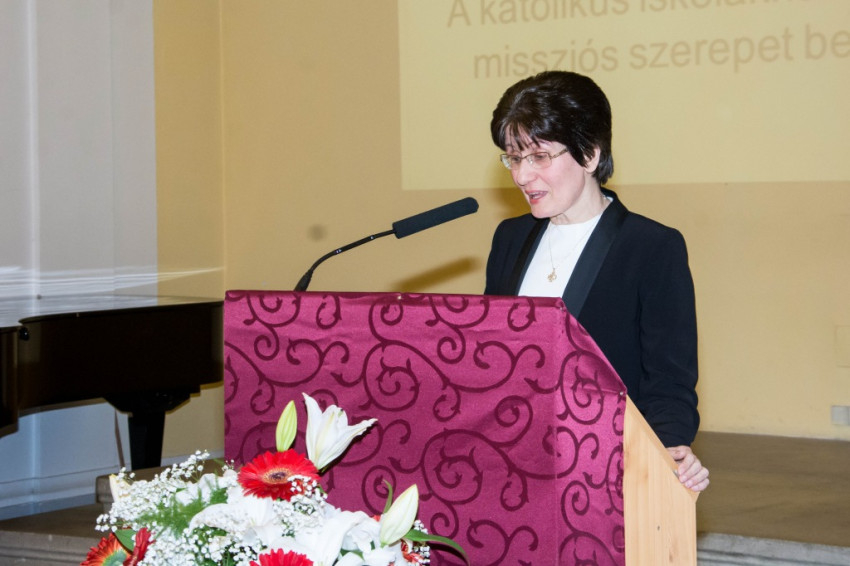 Fülöpné Erdő Mária, a főiskola rektora Az irgalmas és igazságos nevelés társadalmi dimenziói címmel tartott plenáris előadást. Kiemelte az egyházi iskolarendszer lehetőségeit és felelősségét az irgalmasság cselekedeteinek gyakorlásában. Hangsúlyozta, hogy a nevelés igazságossága abban jut kifejezésre, hogy mentes a személyválogatástól, minden növendékkel teljes odafigyeléssel és egyforma odaadással foglalkozik. Rámutatott a keresztény nevelés társadalmat és közgondolkodást formáló jelentőségére is.