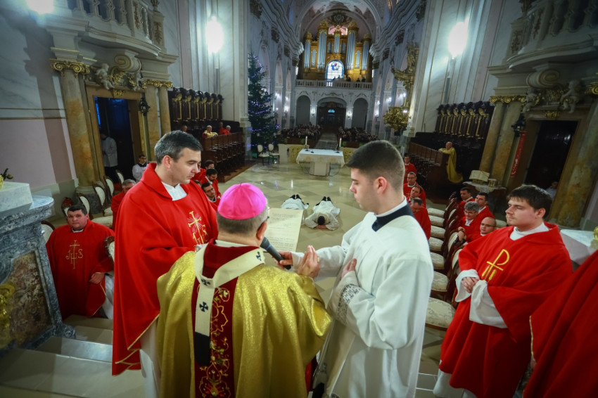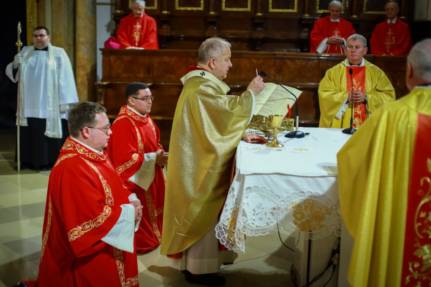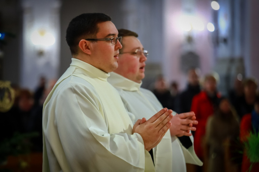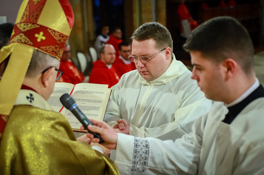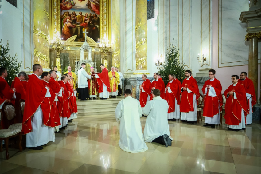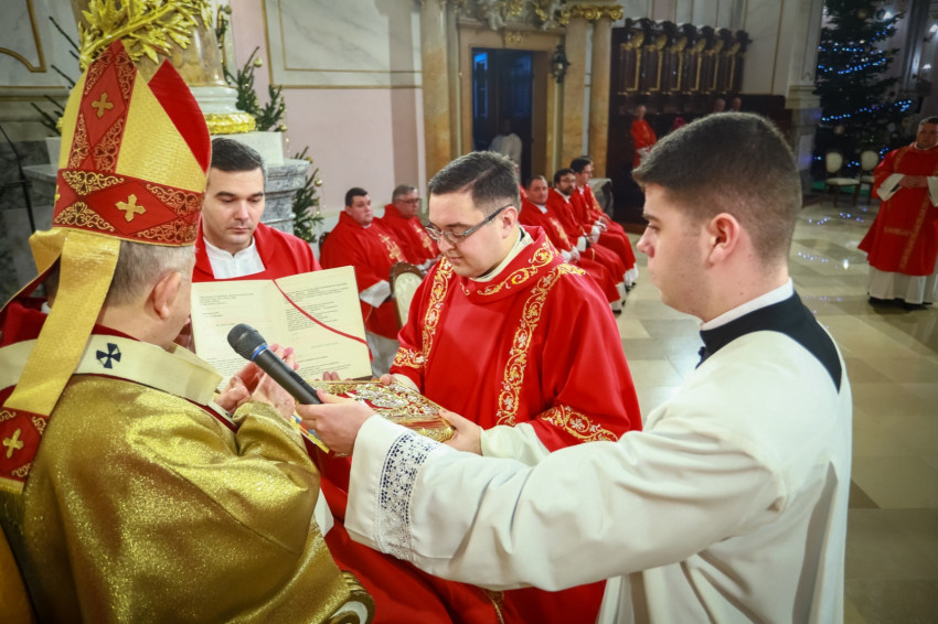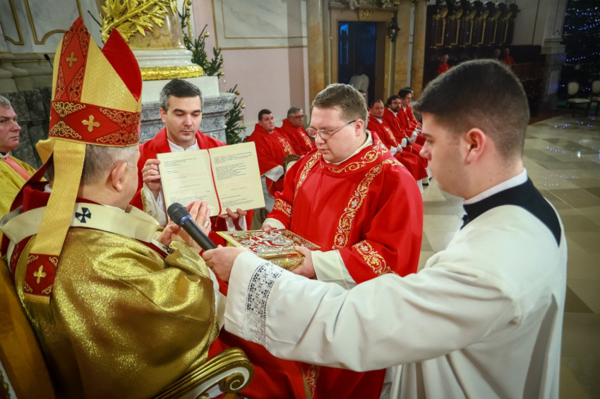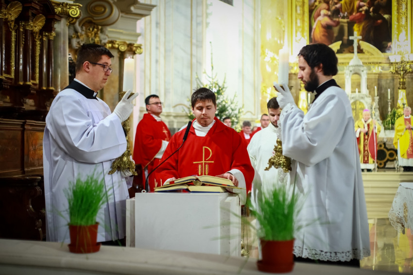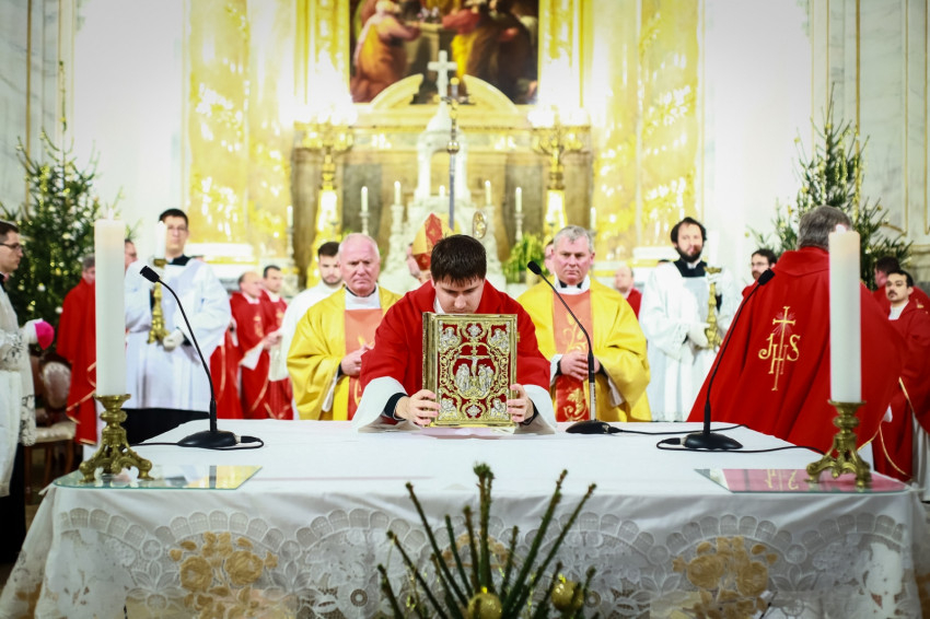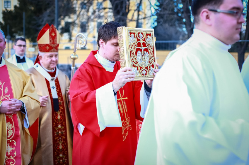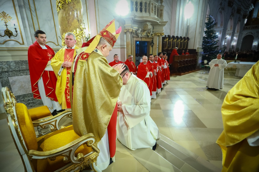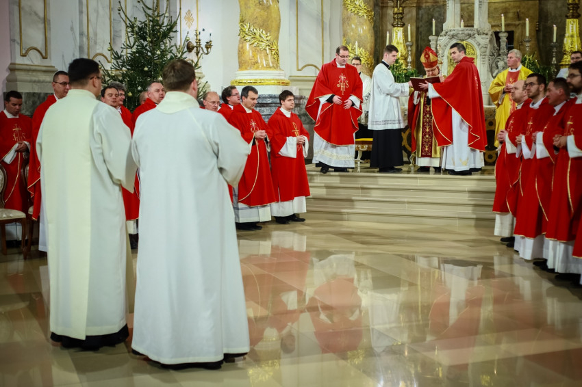 Ami az első közösség életében elkezdődött, ma is zajlik, nem fejeződött be. Ez a történet jutott el arra a pontra, hogy ma két diakónus szentelése történik meg. Ők ma a diakónusok rendjébe kerülnek, s példaként áll előttük a protomártír, aki olyan életet élt, hogy kezdettől szentnek tartotta őt az Anyaszentegyház. A szent alakját az érsek a szentelendők számára példaként ajánlotta, és elmondta, hogy István rendkívül képzett volt, szinte bibliatudósa lett az ószövetségi Szentírásnak. Képzettsége társult a bátorsággal. Hirdette Jézus Krisztust, nem félt a főtanácstól. Végezte a diakónusi szolgálatot, a tanúságtételben pedig eljutott a vértanúságig. A Szentírásban olvassuk, hogy Szentlélekkel eltelt férfiú volt, szentlelkes karizmát kapott, hogy helyt tudjon állni a nagy küldetésben. A diakónusoknak erre a feladatkörre kell felnőni. Hozzá kell hasonlítani az Egyház szolgálattevőinek abban is, hogy hűségesnek kell lenni Krisztushoz.
