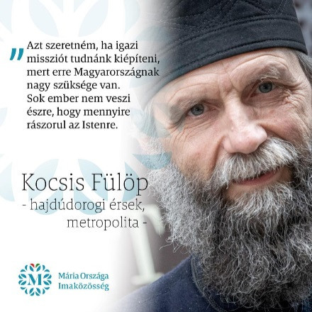 A Nemzetközi Eucharisztikus Kongresszus szeptemberi kezdetéig minden hónap első péntekén tizenhat órától a Várkert Bazár feletti Vízhordó lépcsőnél álló, Dunára néző Mária-szobornál mondanak el a közösség tagjai egy rózsafüzért. Június első péntekén Kocsis Fülöp metropolita is bekapcsolódott az imába, ami előtt buzdító beszédet is mondott. Gondolatait a Hajdúdorogi Főegyházmegye honlapján olvashatják.