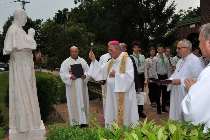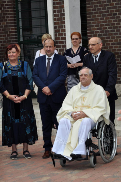 A szentmise elején Pápai Lajos nyugalmazott győri püspök megáldotta a nemrég sajnálatosan megrongált, de az ünnepre helyreállított Mindszenty József-szobrot. A vasmisés atyát Aranyosi Károly, a plébániai tanácsadó-testület alelnöke köszöntötte, aki köszönetet mondott József atya huszonnégy éven át folytatott, gyümölcsöző komáromi szolgálatáért.