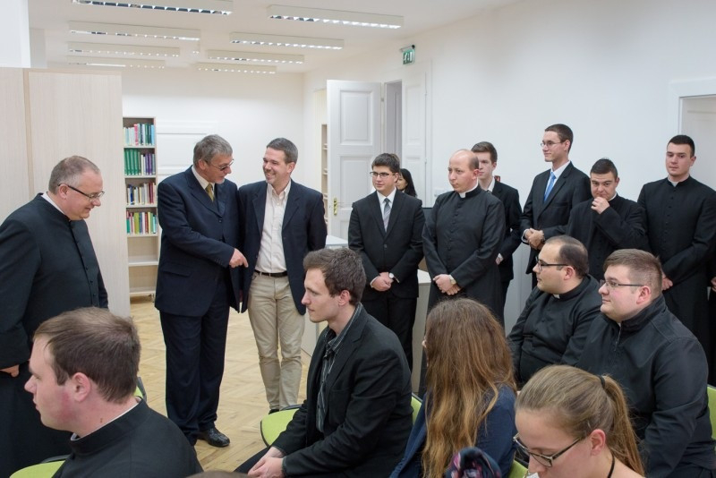 A rektor végül megköszönte a könyvtár megújításában, kialakításában közreműködők segítségét, külön kiemelve Kiss Tamás kincstárigazgatót, Knapp József vállalkozót, Farkas Melinda belsőépítészt, az egyházmegyei építési iroda munkatársait és a papnövendékeket.