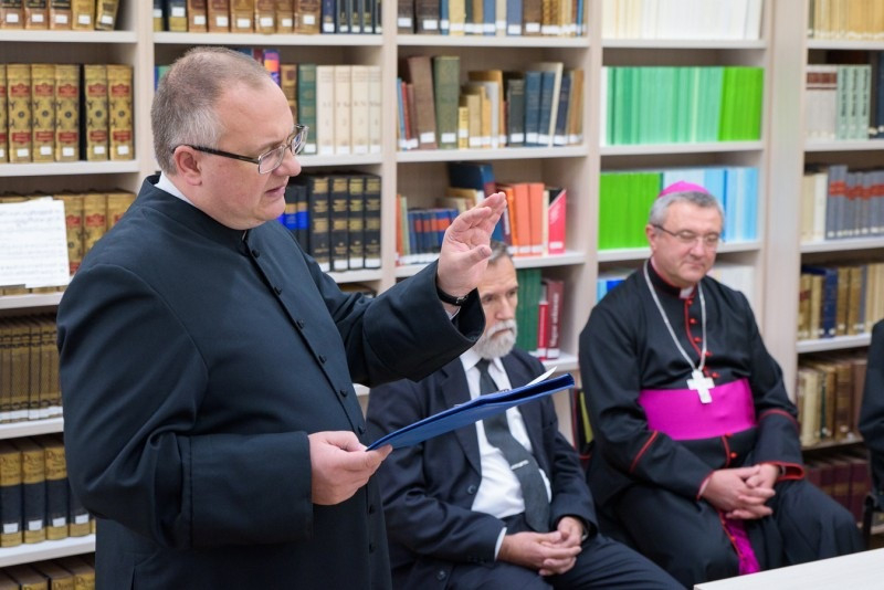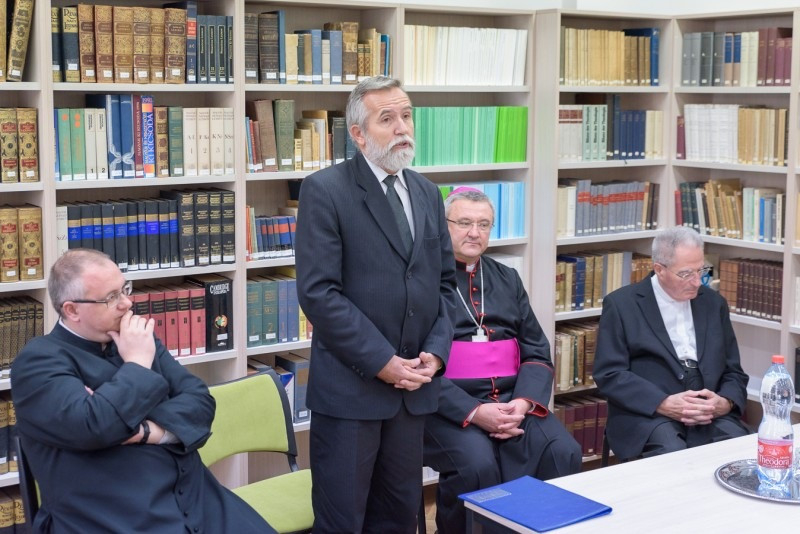 Az ünnepség kezdetén Lukácsi Zoltán kanonok, főiskolai és szemináriumi rektor köszöntötte az egybegyűlteket. Kifejezte örömét, hogy hosszú előkészületek után végre méltó otthonra talált a szeminárium könyvanyaga, majd emlékeztetett: ahol a kereszténység gyökeret vert, ott megjelent a kultúra, s mindezzel együtt járt a könyv használata és tisztelete is.