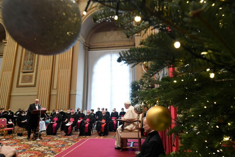 Ferenc pápa a nagyköveteket köszöntve egy nagy családi összejövetelhez hasonlította a találkozót, hangsúlyozva a diplomácia elsődleges célja, vagyis a párbeszéd fontosságát, amely segít az emberi együttélésből fakadó nehézségek feloldásában, valamint a valóság felfedezésében.