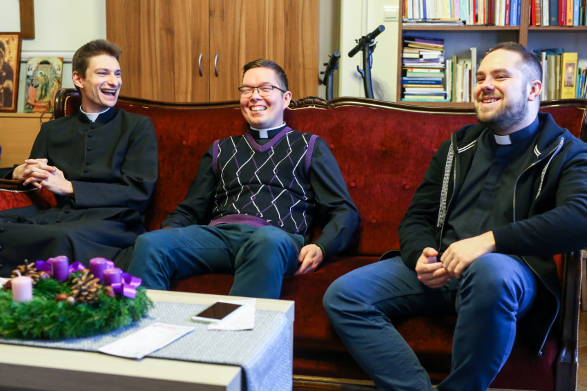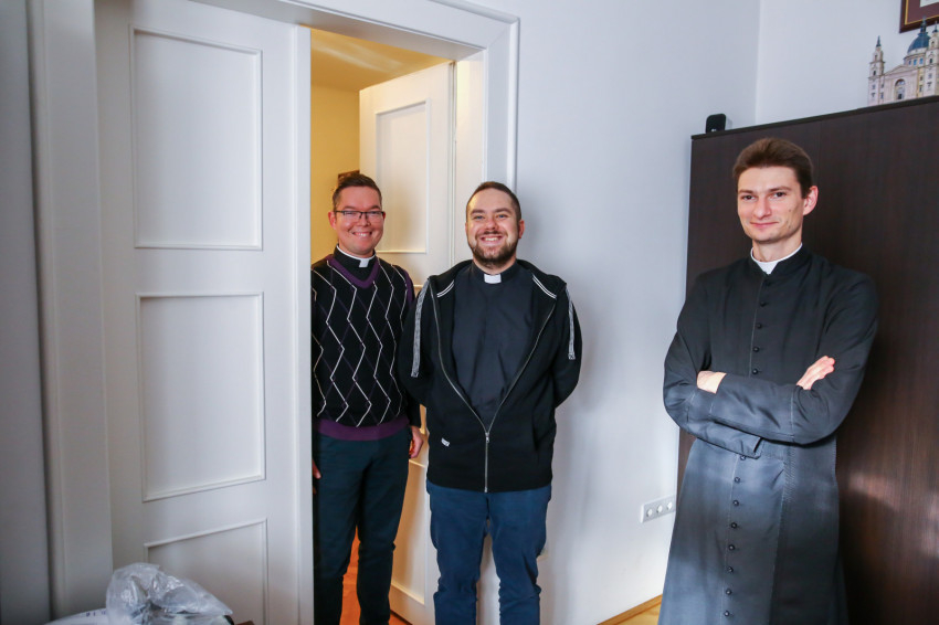 Sokat és sokfelé dolgoznak, emellett pedig igyekeznek támaszai lenni egymásnak. „Fontosnak tartjuk, hogy a közös imában is hordozzuk egymást, hogy kialakuljon a közösségünk lelkisége. Ezen még dolgoznunk kell. Mindegyikünknek más a napirendje, és előfordul, hogy nehezen találunk időt az együttlétre. Most, hogy a kijárási tilalom miatt esténként már mindhárman itthon vagyunk, mindig sort tudunk keríteni az esti közös zsolozsmára. Ennek feltételeit akkor is meg kell majd teremtenünk, amikor véget ér a vírusjárvány, és az életünkbe visszatérnek a lelkipásztori programok a plébánián, a kollégiumban és az egyetemen. Tudjuk, milyen nehéz lesz ezt megvalósítani” – osztják meg velünk a gondolataikat.
