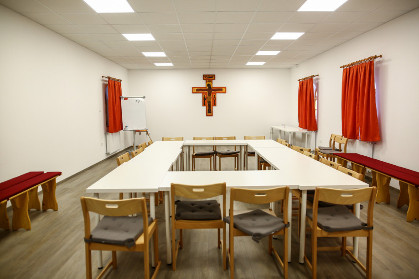 Három önálló kis lakás, iroda és egy közös fogadóhelyiség van az épületben, amelyet egy polgári házból alakítottak plébániává. A ház mellett virágoskert kerti pavilonnal, hátul gyümölcsfák és nagy füves tér, amely kiválóan alkalmas a gyerekeknek és a fiataloknak játékra, sátorozásra.