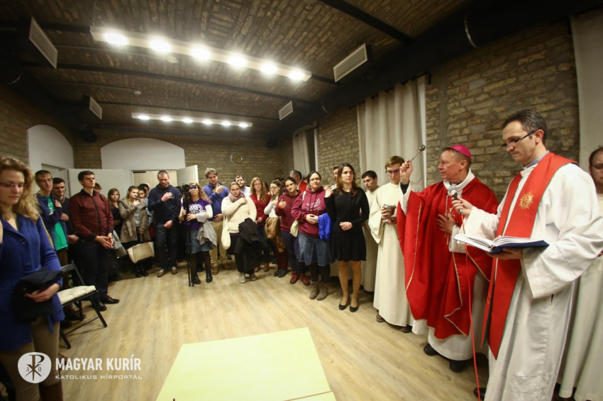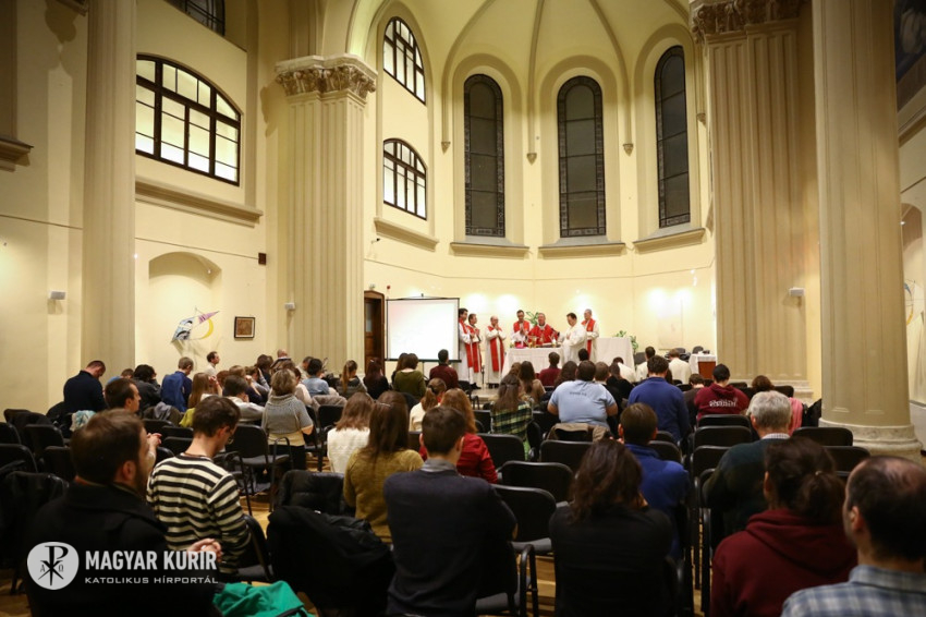 Sajgó Szabolcs jezsuita szerzetes, a Párbeszéd Háza igazgatója köszöntötte a közösségi térnek otthont adó intézmény nevében az egybegyűlteket. Kifejezte örömét, hogy megvalósul az együttműködés, és a váci egyházmegyei fiatalok otthonra lelnek a Párbeszéd Házában. Elmondta, hogy párhuzamosan zajlik a házban egy beszélgetés a párizsi eseményekről és kérte az összegyűlt fiatalokat, a szentmisén imádkozzanak a világért, hogy mint a szülési fájdalom után, valami jobb szülessen ebből a nehéz helyzetből.