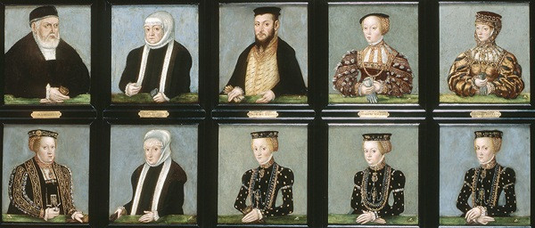 A kiállítás kiemelkedő műtárgyai közé tartoznak például a Jagelló-dinasztia tagjairól készült családi portrék ifjabb Lucas Cranach (1515–1586) műhelyéből, valamint II. Zsigmond Ágost lengyel király gyermekpáncélja, amelyet sokáig II. Lajos tulajdonának véltek, és amelyet a Magyar Nemzeti Múzeumban őriznek.