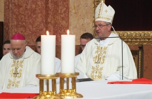 A mai nap közös ünnep – kiszakít a hétköznapokból és segít visszaidézni az első szeretetet, a meghívás idejét – mondta az egyházmegye papjainak a székesfehérvári székesegyházban bemutatott nagycsütörtöki krizmaszentelési szentmisén Spányi Antal megyéspüspök. A főpásztor szerint jó tudatosítani, hogy „életünk már nem a miénk – meghaltunk önmagunknak és így vagy úgy, de kitartottunk”, majd emlékeztetett rá, hogy a püspök kézföltétele által kapott kegyelmet fel kell szítani, hiszen „mindent megkaptunk benne, amire a szolgálat teljesítéséhez és a papi hivatás megéléséhez szükségünk van. A pap is él, de már Krisztus él benne.”