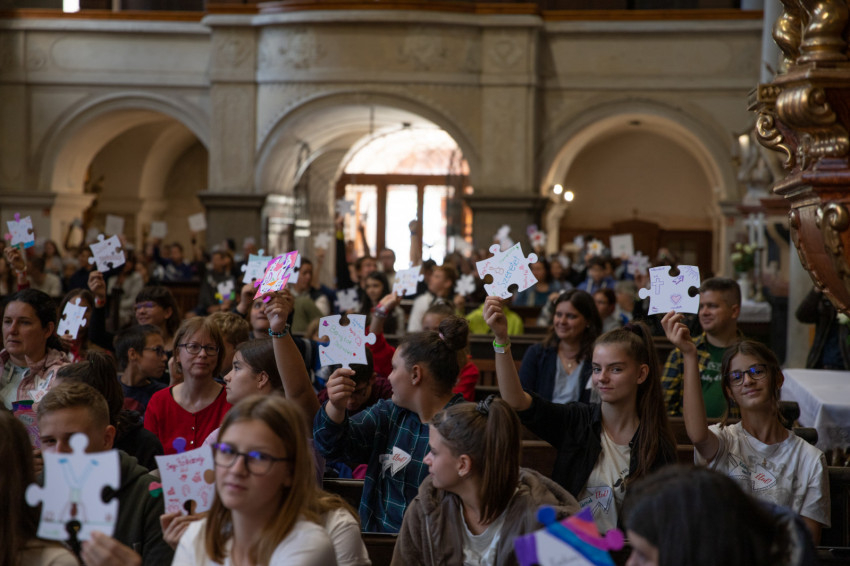 A szentmise felajánlási imájában magasba emelték a puzzle-darabokat, ezzel is kifejezve a Jézusban megélt egységet. Ezt követően flashmobon vehetett részt az ifjúság, amelyet hatalmas lelkesedés és ujjongás fogadott. Minden résztvevő együtt táncolt és énekelt az ferences templom kvadrumjában.