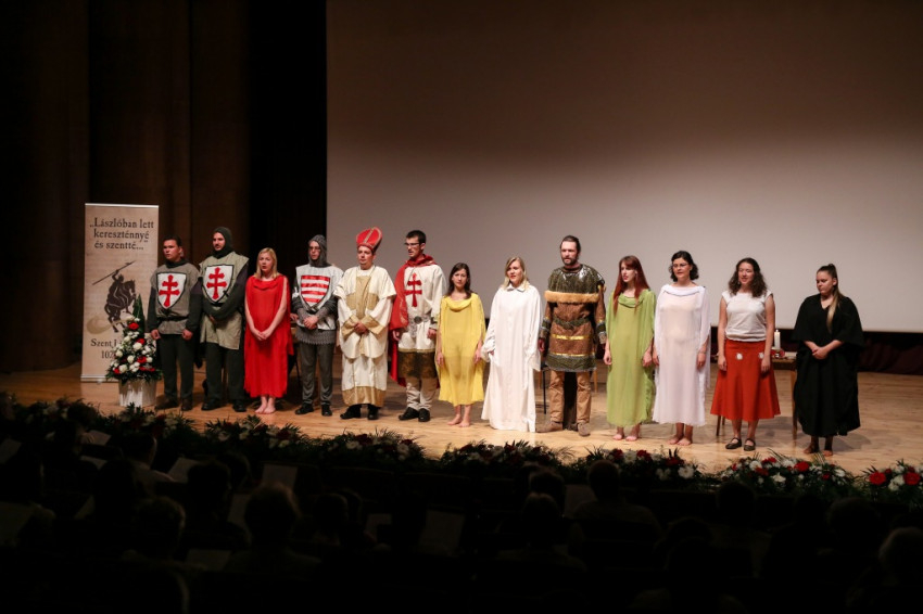 A társulat tagjai a konferencia résztvevőit megénekeltetve zárták előadásukat. A Richter János Hangverseny- és Konferenciateremben elhangzott a Szent László király, Istennek szolgája… kezdetű ének és ősi himnuszunk, a Boldogasszony Anyánk.