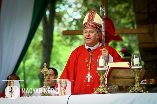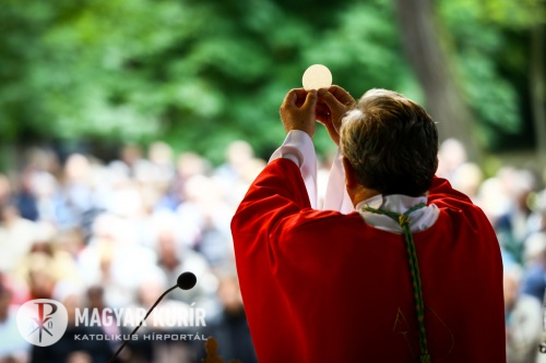 A találkozó csúcspontja a szabadtéri oltárnál bemutatott szentmise volt, amelynek főcelebránsa Snell György esztergom-budapesti segédpüspök, a Szent István-bazilika plébánosa volt.