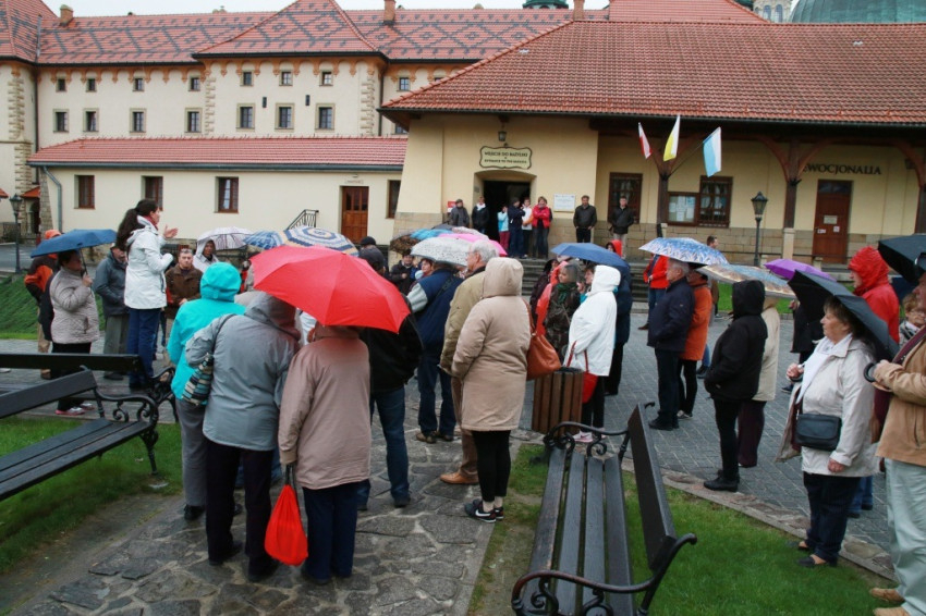 A szentmisét követően a zarándokok a keresztelőkút mellett imádkoztak, majd érseki áldással indultak tovább a következő állomásra, az UNESCO Kulturális és Természeti Világörökségek Listájára is felvett Kalwaria Zebrzydowskára. A ferencesek által gondozott kegyhely évszázadok óta Lengyelország déli régiójának egyik vallási központja. Története a 17. század elejére nyúlik vissza, amikor Mikołaj Zebrzydowski krakkói vajda itt alapított kolostort és Krisztus szenvedésének emlékére több kápolnát építtetett a jeruzsálemi Kálvária mintájára. A kolostor a Mária-szentéllyel késő barokk építmény rokokó elemekkel, kerengőkkel tarkítva, bent pedig modernista díszítésekkel, számos értékes festménnyel. Az együtteshez 42 kápolna tartozik a híres „kálvária ösvényekkel”. A zarándokok körbejárták a kolostort és a templomot, majd továbbindultak Krakkóba.