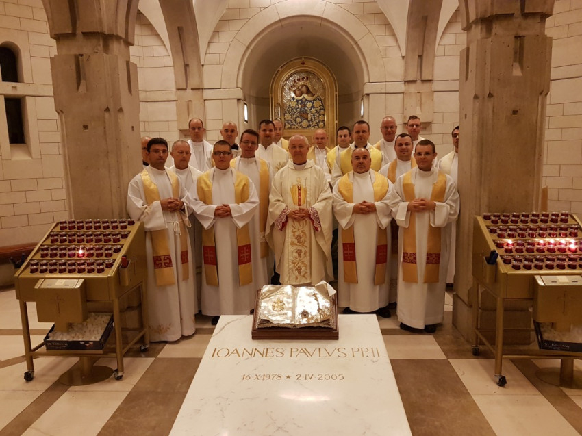 Ternyák Csaba egri érsek, a lengyel Michal atya, aki egyben a zarándokok idegenvezetője is volt, Kakuk Ferenc érseki titkár és tizenhét káplán vett részt a zarándoklaton, amelyről az újmisés Maksó Péter, a miskolc-diósgyőri plébánia káplánja számolt be.