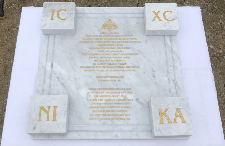 Szeptember 26-án, szombaton ünnepélyesen letették Ausztriában az első ortodox kolostor alapkövét. A szertartást Arszeniosz Kardamakisz, Ausztria görög ortodox metropolitája, Magyarország exarchája vezette; az eseményen részt vett Ägidius Zsifkovics eisenstadti (kismartoni) katolikus püspök, Hans Peter Doskozil kormányzó, Paisziosz archimandrita, a kolostor apátja és Andreas Sattler, a település polgármestere.