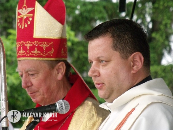 „Pünkösd előtt vagyunk, alapkövet teszünk le, és bennem ez a kettő összekapcsolódik – fogalmazott Beer Miklós megyéspüspök –, mert mindkettő a jövőről szól: szent kezdet. Kezdete annak a jövőnek, amelyet Isten jól ismer, mi azonban még nem, és a mi Istenünk mégis ránk bízza. Ezekben a percekben százezrek vannak együtt Csíksomlyón. Hozzájuk csatlakozunk mi is itt, új templomunk alapkövénél. Igyekszünk megérteni, hogy nekünk, magyaroknak milyen fontos szerepet szán az Isten a mai, menekültektől ellepett, új útját kereső Európában. Nekünk, magyaroknak kell megmutatni, hogy igenis lehetséges békében, szeretetben, egymást segítve élni a mai világban.”