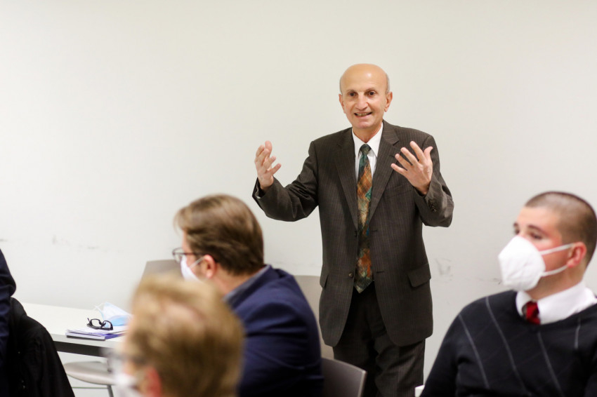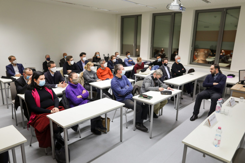 A megjelenteket Ujházi Lóránd, a Kánonjogi Posztgraduális Intézet (KJPI) tanszékvezető tanára köszöntötte. Elmondta: a Nemzeti Közszolgálati Egyetem (NKE) Vallás és Társadalom Kutatóintézete, az NKE Hadtudományi és Honvédtisztképző Kara Honvédelmi Jogi és Igazgatási Tanszéke, valamint a Pázmány Péter Katolikus Egyetem Az Igazságos Háborútól a Béke Filozófiájáig Kutatócsoportja előadás-sorozatot indított a Magyarok a Szentszék szolgálatában címmel. A kutatóintézet sorozata azoknak a ma élő papoknak az életpályáját mutatja be, akik a szentszéki diplomácia szolgálatában állnak.