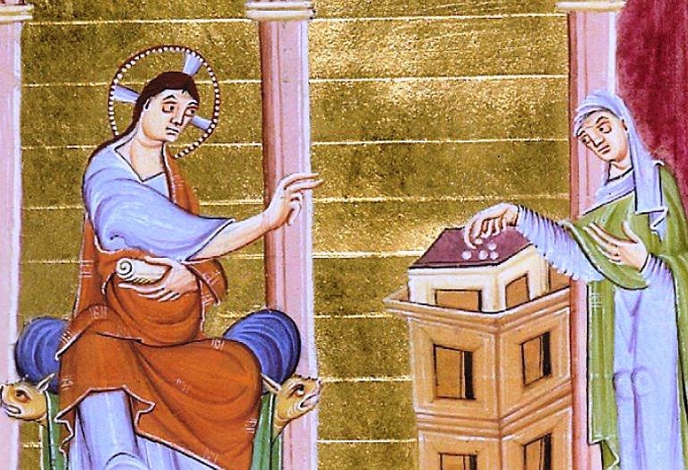 Erre Jézus magához hívta tanítványait, és így szólt hozzájuk: „Bizony, mondom nektek, ez a szegény özvegy többet adott mindenkinél, aki csak dobott a perselybe. Mert ők a feleslegükből adakoztak, ez pedig mindent odaadott, amije csak volt, egész vagyonát.”