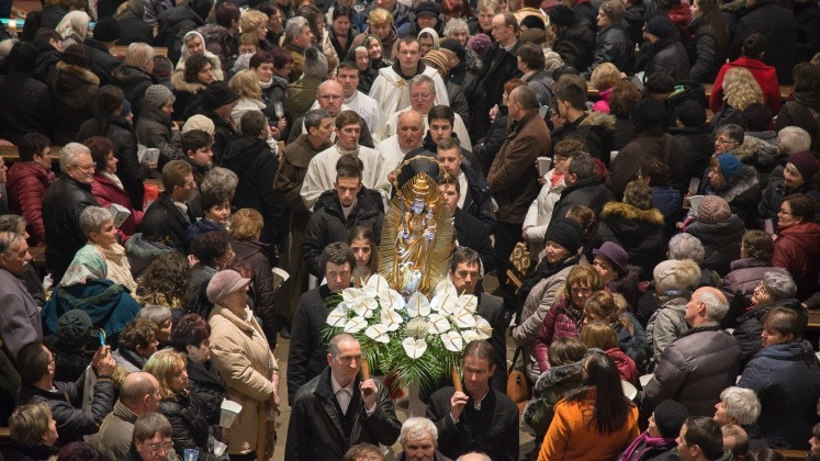A kegytemplomban minden hónap első szombatján, mely a Mária Szeplőtelen Szíve-tisztelet napja, rózsafüzérrel és körmenettel kísért szentmisét tartanak. Idén ez a hagyományos elsőszombati Mária-köszöntés egybeesett Gyertyaszentelő Boldogasszony ünnepével.