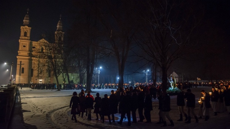 A szentmise után a kegyszobor másolatával, a megszentelt gyertyák fényében körmenettet tartottak a hívek a kegytemplom körül. A rózsafüzér-imádságot a csíkszentmihályi hívek vezették, a kegyszobor másolatát ugyancsak ők vették vállukra a körmenet során.