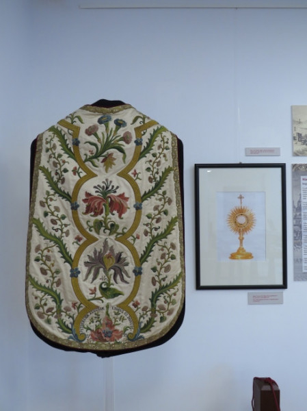 A tárlat legkülönlegesebb darabjai a Mária Terézia-miseruha és a mellette lévő Migazzi-monstrancia fényképe. A miseruháról az 1910-ben készült Koncz-listában, az egyházmegyei múzeum törzsanyagának leírásában az áll, hogy a darab Mária Terézia munkája, aki 1773-ban ajándékozta Migazzi Kristófnak, a Váci Egyházmegye akkori püspökének. Ezt a miseruha felirata is megerősíti: „M. Theresiae Augustae et opus et donum 1773.”