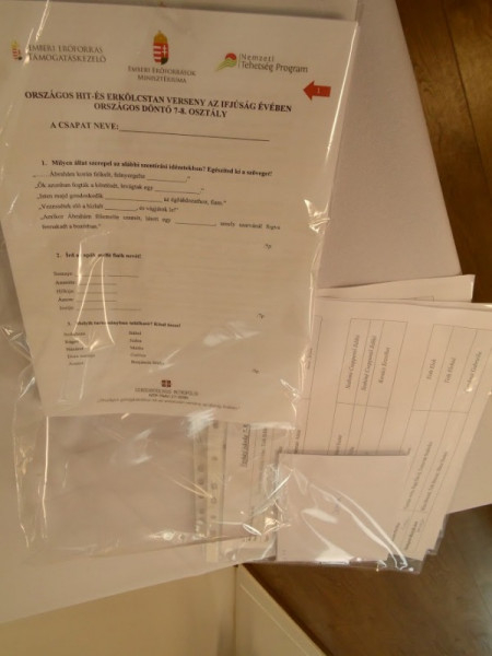 Ez után feladatlapot kellett kitölteniük a fiataloknak, melynek témája Szent Erzsébet, Szent Piroska, Szent István, Szent László és Romzsa Tódor élete volt. A harmadik feladat egy százhúsz darabos puzzle kirakása volt. Amíg a feladatlapokat javították, Orosz Atanáz megyéspüspököt kérdezgethették a csapatok, kötetlen beszélgetés keretében.