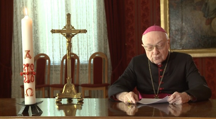 Nem szeretnénk, ha azok a rendkívüli körülmények, amelyek jelenleg foglalkoztatnak minket és ami miatt aggódunk, elvennék a szent napok belső örömét. Használjuk ki a szentmiséken való részvétel azon lehetőségeit, amelyeket a média kínál nekünk. A sajtó, a rádió, a televízió és az internet több lehetőséget kínál számunkra, hogy lélekben kövessük a húsvéti szent háromnap gondolatvilágát, és helyettesítsük ezáltal mindazt, amit a fertőzés kockázata tőlünk elvett. Urunk halálának és feltámadásának üzenete ily módon eljuthat mindannyiunkhoz: betegekhez és egészségesekhez, fiatalokhoz és idősekhez. Kövessük figyelemmel a szentmise közvetítéseket, és ünnepeljünk együtt a képernyők és a rádiók előtt.