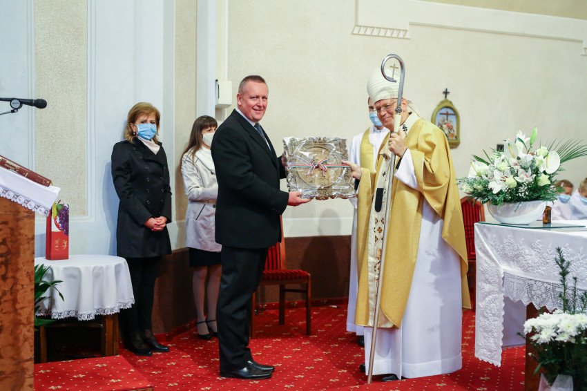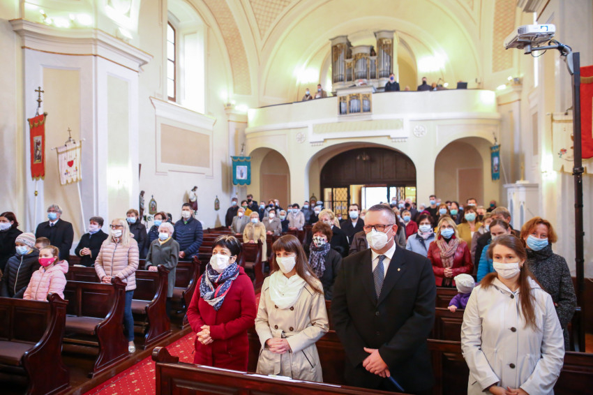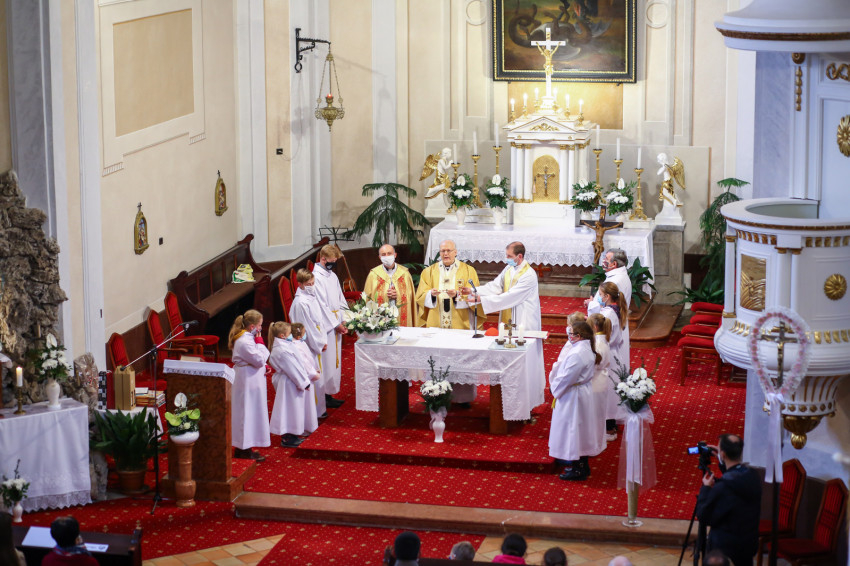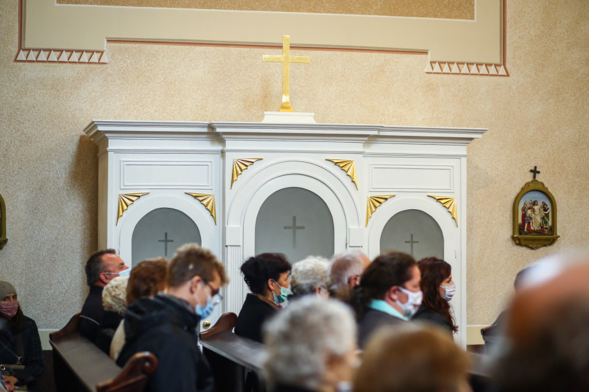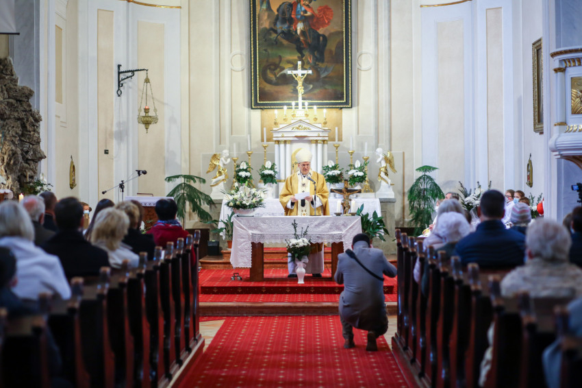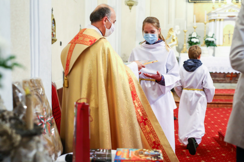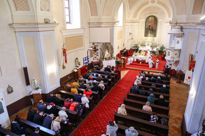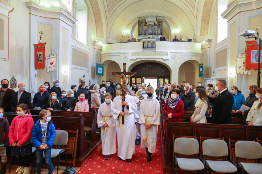 Köszöntőjében Szabó Zoltán plébános elmondta: „A Nemzetközi Eucharisztikus Kongresszusra készülve fontosnak tartottuk, hogy a lelki előkészület – szentségimádás, a missziós kereszt fogadása, virrasztás – mellett liturgikus eszközeink és tárgyaink is megújuljanak. Újraaranyoztattuk a monstranciát és a miséző kelyheket, restauráltattuk a fából készült főoltárt, szószéket és gyóntatószéket.”