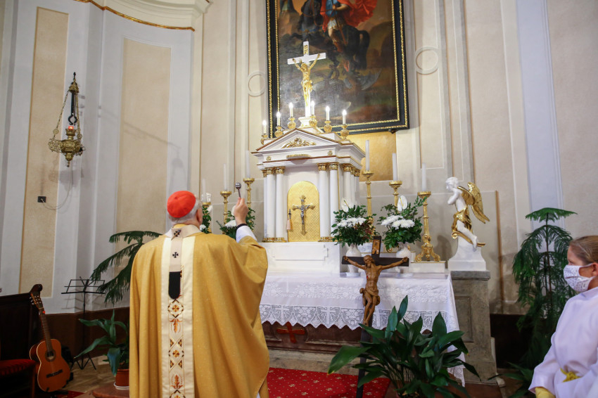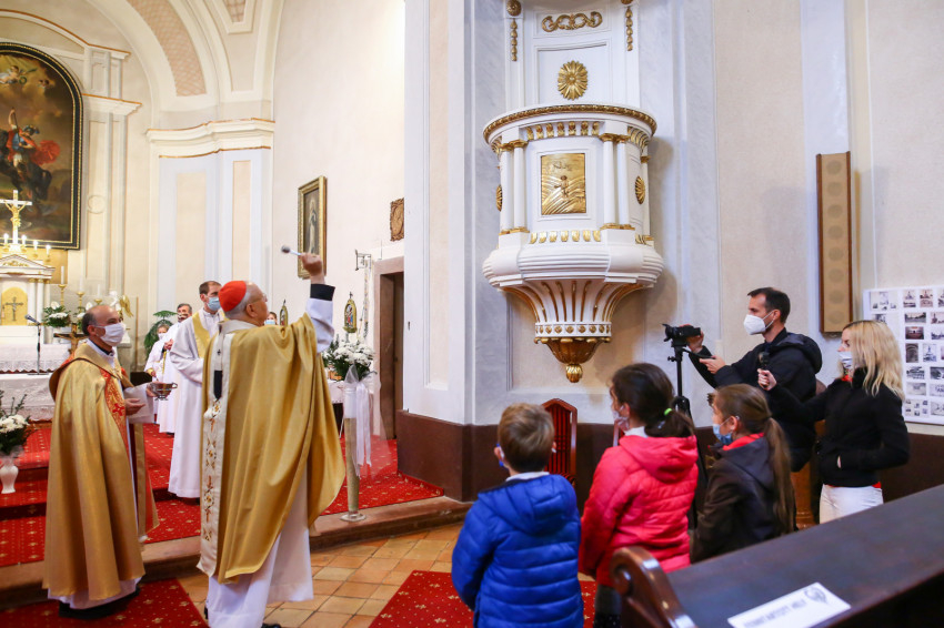 Erdő Péter bíboros megáldotta a templom megújult főoltárát, a szószéket és a gyóntatófülkét.