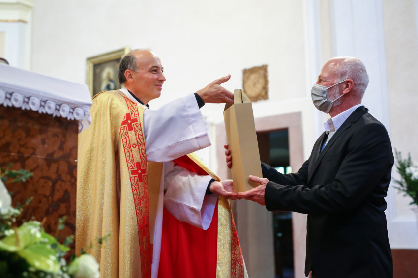 A képviselő-testület nevében Goldschmidt Éva és Szantner Gábor mondott köszönetet a főpásztornak. Szantner Gábor egy, a közösség számára kedves képet adott át Erdő Péter bíborosnak. Ez a kép a sekrestye bejárata felett található, ezt vitték el a madeirai Nossa Senhora do Monte-templomba is, ahol Boldog IV. Károly nyughelye található.