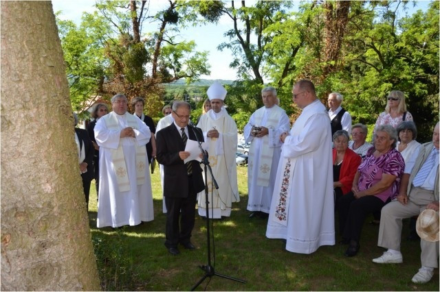 A felújított templomot és az emlékoszlopokat Császár István egyházmegyei kormányzó áldotta meg. Az ünnepi szentmisén prédikációjában elmondta: a templom Isten háza, ahol jobban tudunk hozzá fohászkodni, és megértjük az Ő hozzánk küldött üzenetét. Legyen a templom a reménység jele, széles kapu az örök boldogság felé!