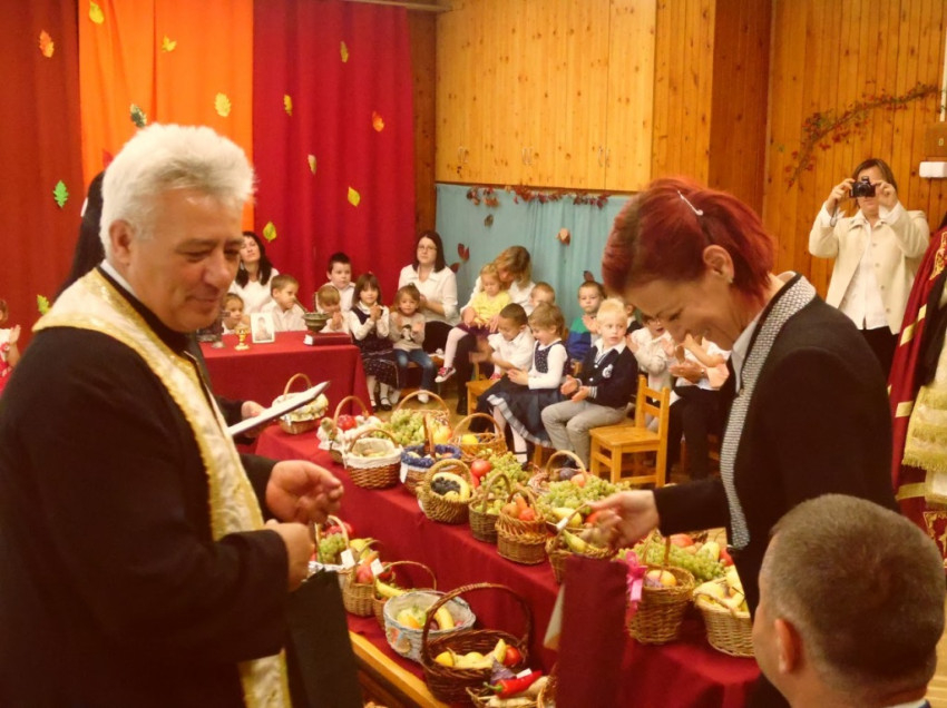 Az épület megáldását az óvoda lelkészének segédletével Orosz Atanáz püspök végezte. A főpásztor az óvodásoknak is elmagyarázta a felolvasott evangéliumot és a szertartás mozzanatait, jelentését, majd a hagyományokhoz híven megáldotta a terméseket, melyeket kis kosarakban hoztak otthonról a gyermekek.