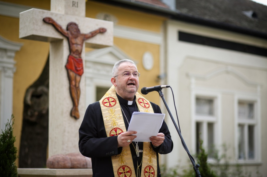 Finta József plébános a keresztnek és a kenyérnek mint jelképeknek a szoros kapcsolatát fejtette ki beszédében. A plébános emlékeztetett arra, hogy a kenyér az őskeresztény kortól kezdve Krisztus jelképe. „Krisztus a kereszten nem megromlott, elpusztult, hanem áldozattá lett, ezt jelképezi az a kereszt is, amit a kenyérre rajzolunk, mielőtt megszegjük. Ez azt is jelenti, hogy nekünk is áldozattá kell lennünk. A mai világban egyre kevesebben ajándékozzák oda magukat másokért: a Szegények Kenyere hozzájuk is szól, hogy áldozattá kell lenni a szeretetben” – bíztatott Finta József.